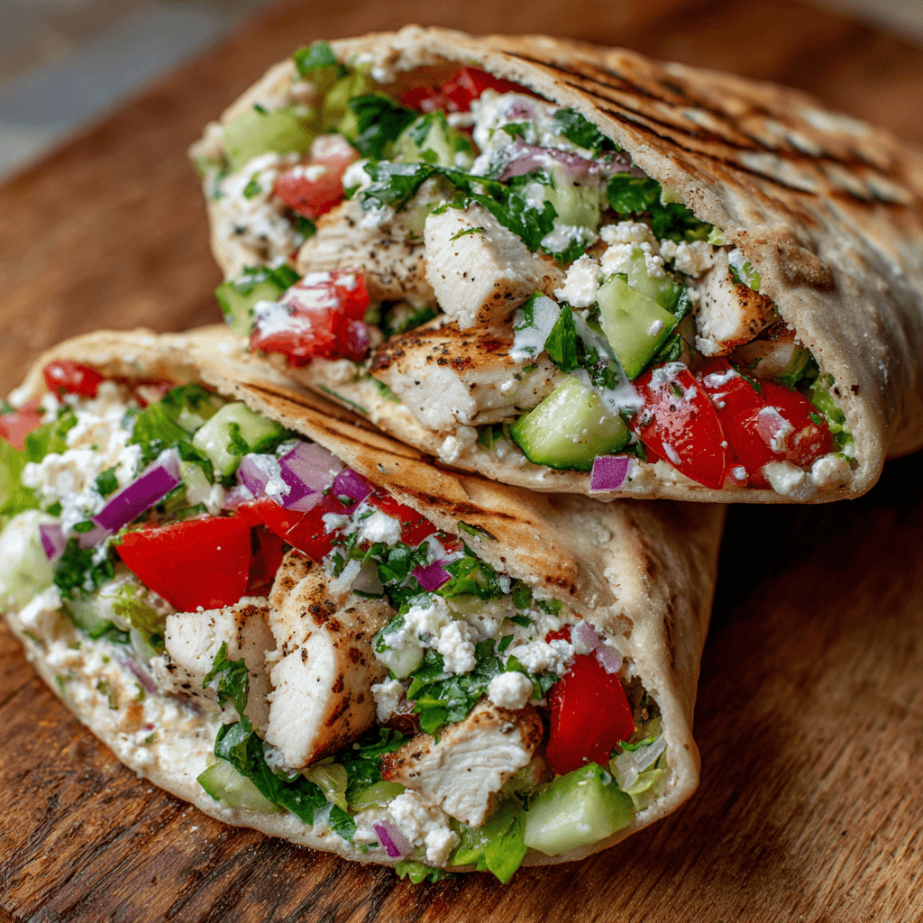 Description: Fresh, handheld pitas with lean chicken and yogurt dressing.
