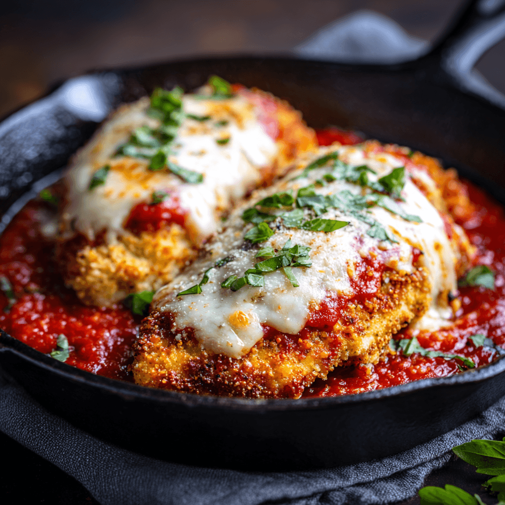 Directions: Coat chicken with breadcrumbs, bake at 200°C (400°F) for 20 minutes. Top with marinara and cheese, bake another 5 minutes.
