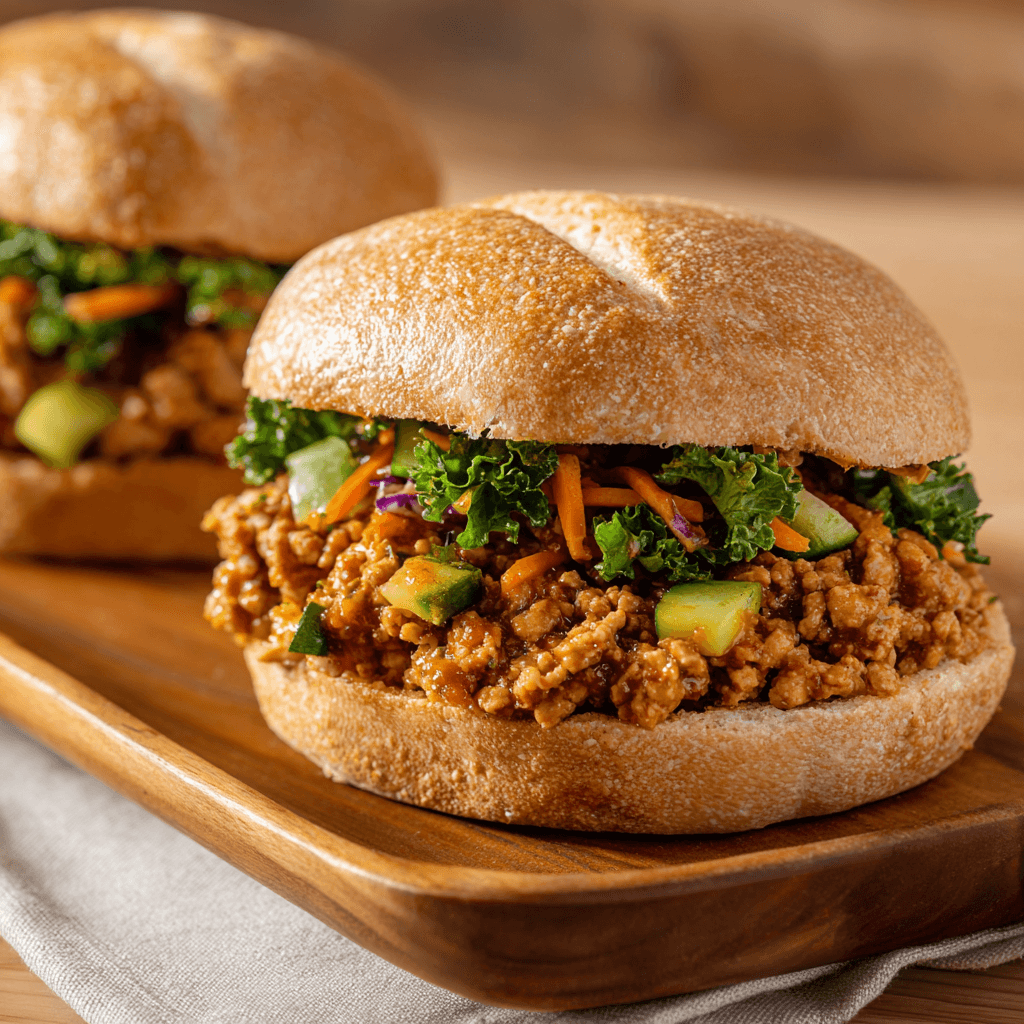 Directions: Cook turkey and veggies, stir in tomato sauce, and simmer. Spoon onto buns and serve.