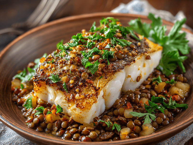 Meal Prep Tip: Keep fish separate to avoid soggy lentils.