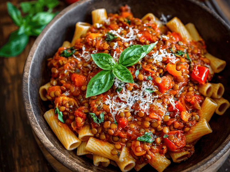 Description: A high-protein spin on classic pasta with a hearty lentil sauce.