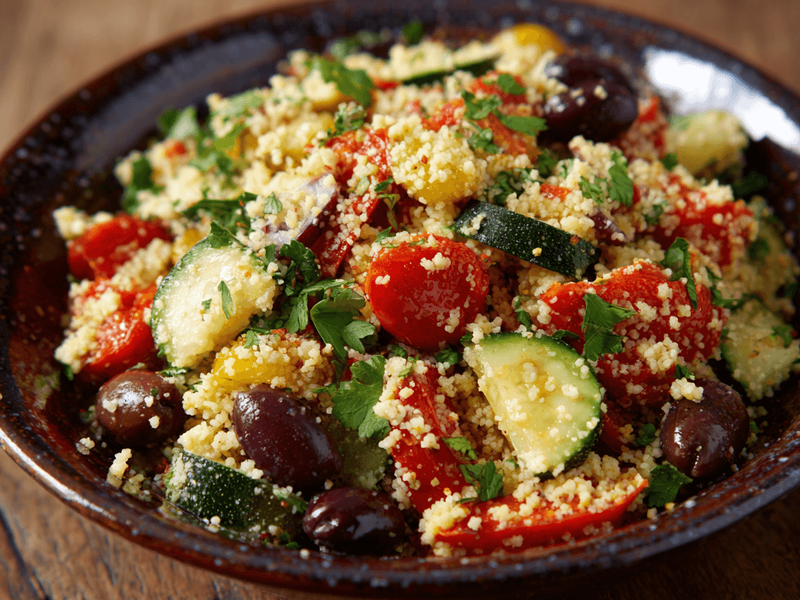 1. Toss couscous with tomatoes, cucumber, and olives.
