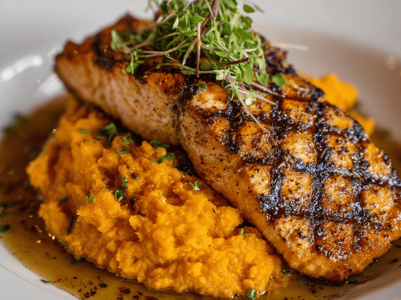 Description: Omega-3-rich salmon with creamy sweet potatoes for balanced fuel.
