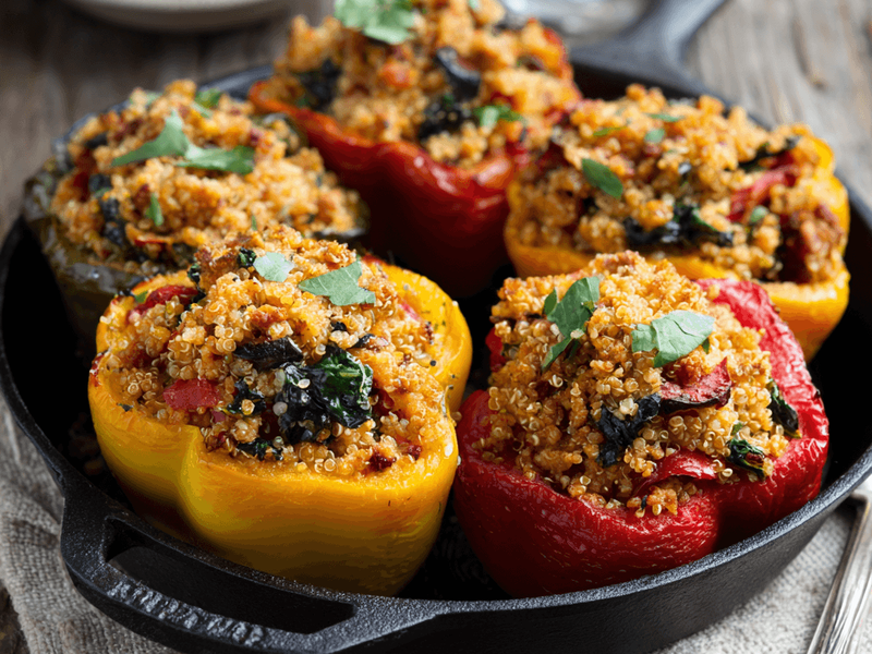 Description: Protein-packed bell peppers filled with turkey, quinoa, and spices.
