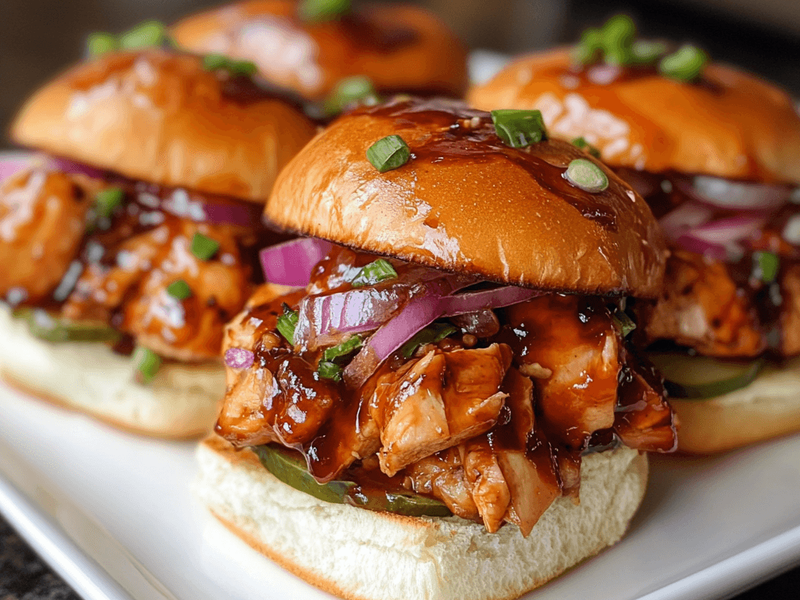 Mini sandwiches filled with BBQ chicken and coleslaw are a fun and flavorful lunch option.