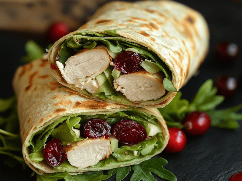 This wrap combines sliced turkey, cranberry sauce, and cream cheese for a tasty twist on Thanksgiving flavors.