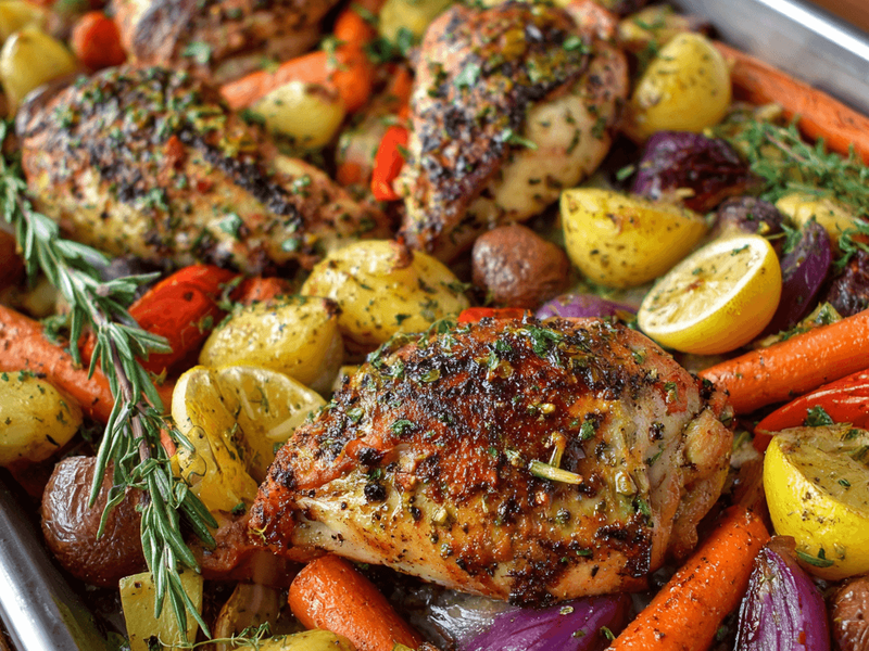 1. Juicy Garlic Herb Chicken with Roasted Veggies