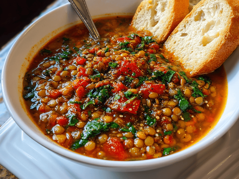 2. Add lentils, tomatoes, broth, and cumin. Simmer until lentils are tender.