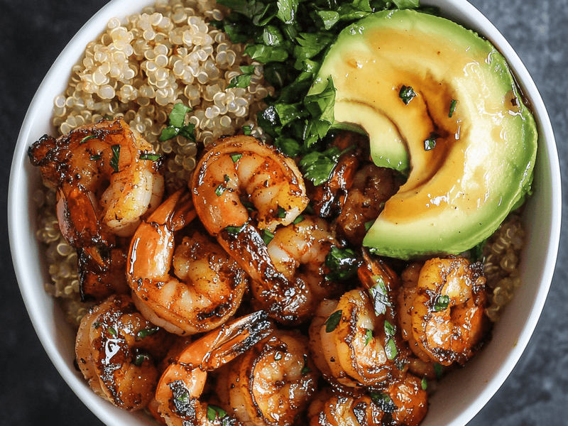 3.Honey Garlic Shrimp & Quinoa Bowl