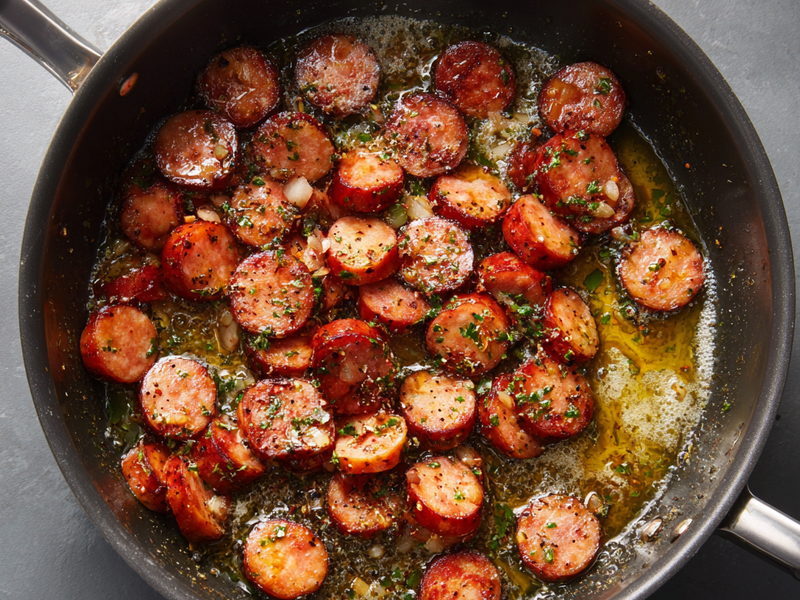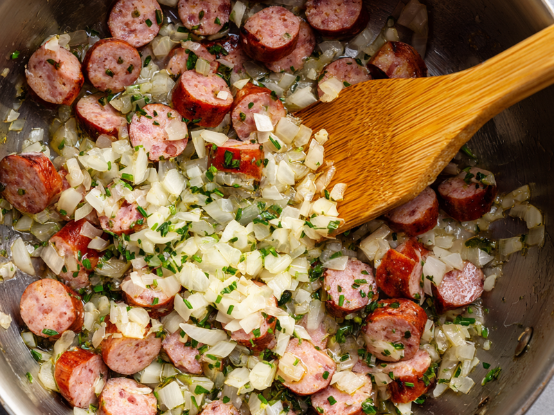 Step 1: Brown the sausage in olive oil.