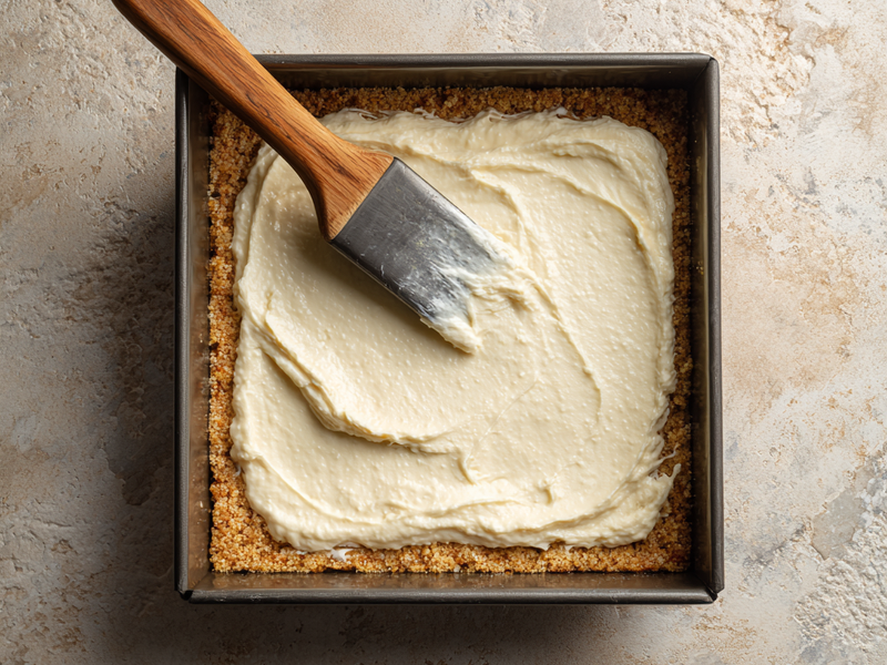 Step 8: Bake for 28 to 32 minutes. The edges should look set while the center still has a soft jiggle. This helps keep the bars creamy once chilled.