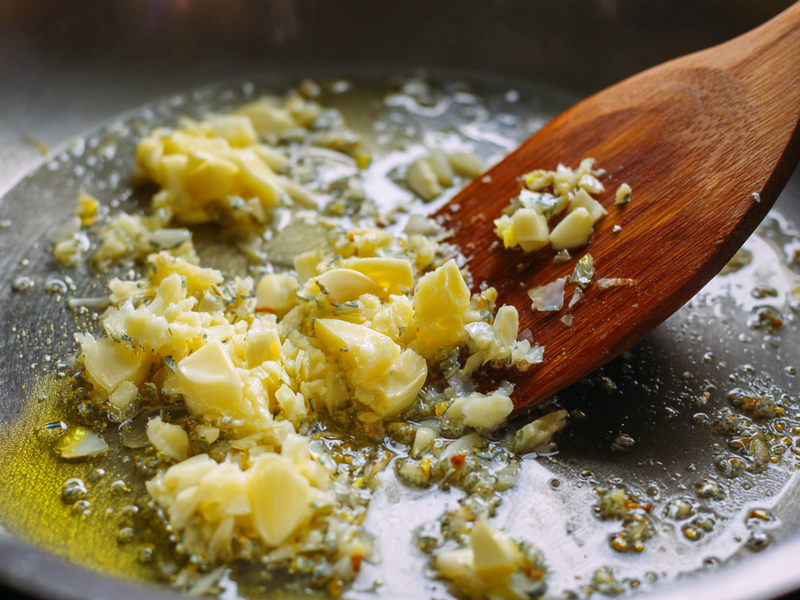 Step 3: Melt the butter with olive oil and cook the garlic briefly.