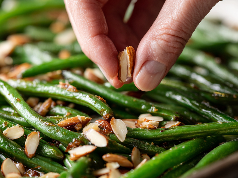 These green beans are versatile. You can add crushed red pepper for heat, or swap almonds for pine nuts. They pair well with roasted chicken, beef, and holiday mains. The dish reheats well and keeps its texture, making it reliable for gatherings.