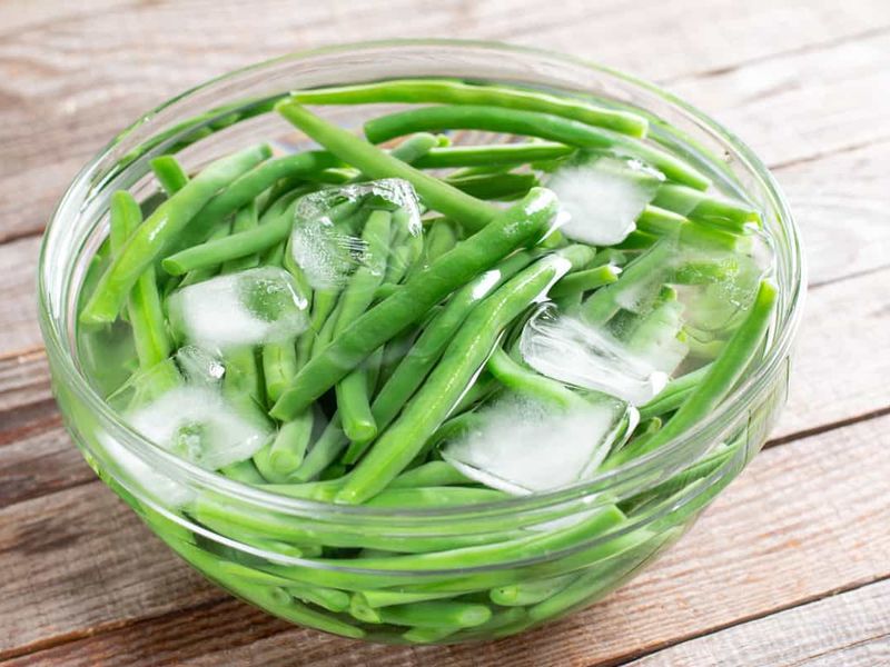 Step 2: Transfer the beans to an ice bath to keep them crisp.