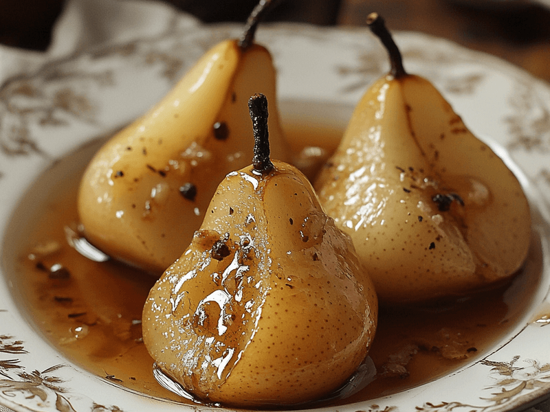 Drizzle pears with honey, sprinkle ginger and cinnamon.