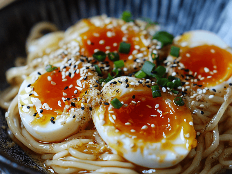 Ramen-style soft-boiled eggs served over silky miso butter noodles. Umami-packed, creamy, and totally addictive.