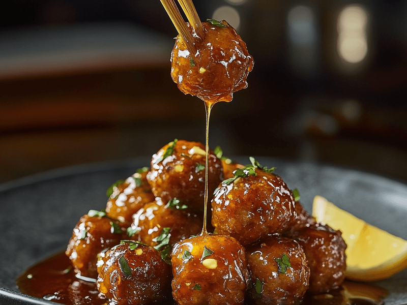 3. Simmer honey and sriracha, toss meatballs in glaze.