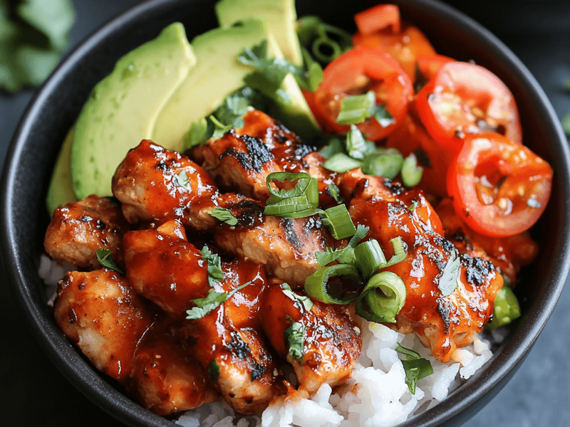 These bowls are full of flavor with juicy grilled chicken, a spicy sriracha honey sauce, roasted veggies, and rice. The balance of sweet and spicy is sure to excite your taste buds!