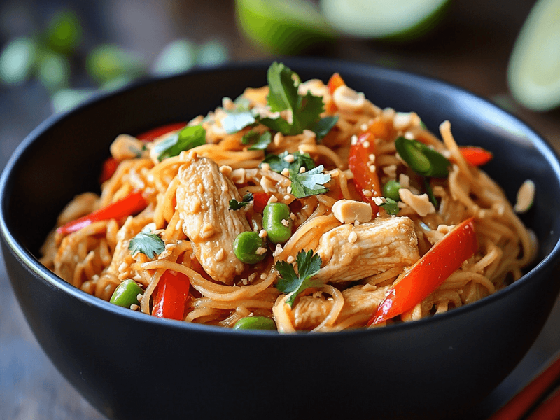 A vibrant, flavorful dish that combines tender chicken with rice noodles and a creamy, slightly spicy peanut sauce. This meal prep is a perfect mix of sweet, savory, and spicy.