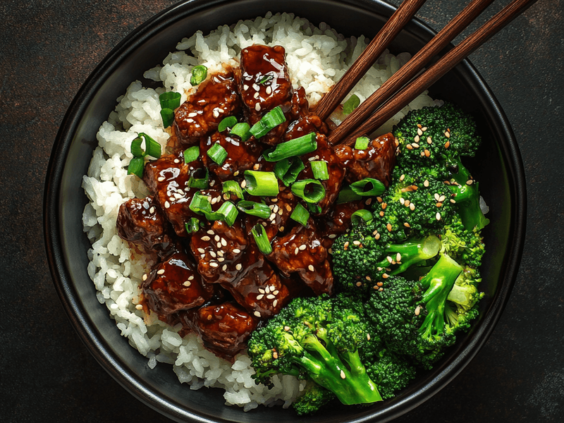 A forever favorite with a twist! This meal features tender beef and crispy broccoli in a savory teriyaki sauce, served over rice.