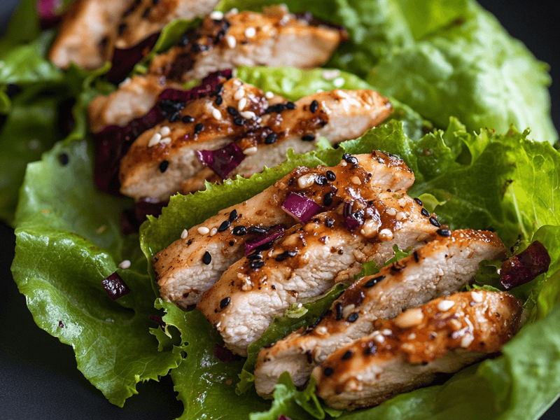 Light and flavorful, these chicken lettuce wraps are packed with fresh herbs, vegetables, and a savory soy sauce mixture.
