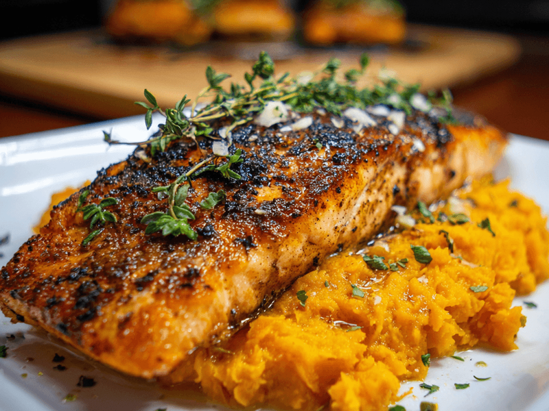 3. Baked Salmon with Sweet Potato Mash