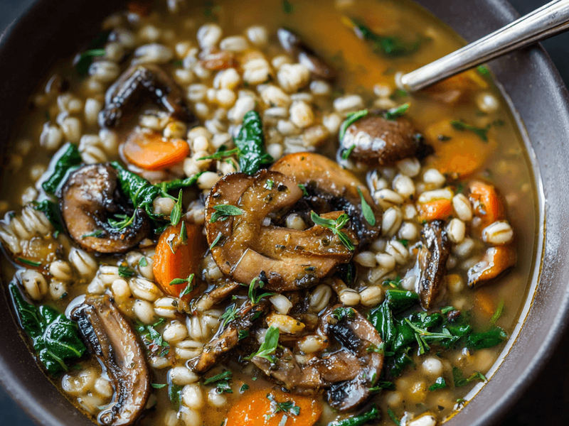 Description: A hearty, earthy soup made with mushrooms and barley, perfect for big batch cooking.