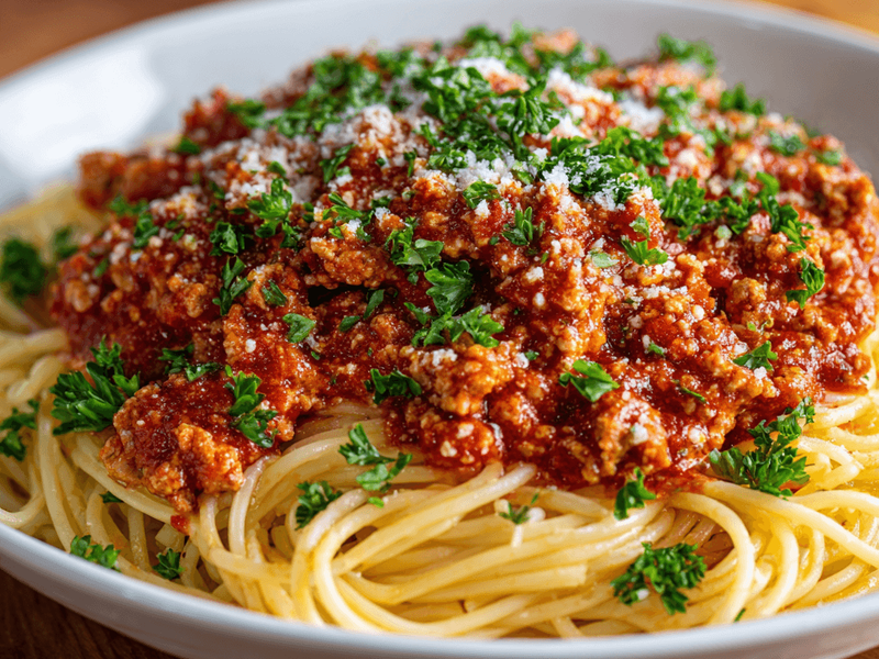 - Ingredients: Whole wheat spaghetti, ground turkey, marinara, Italian herbs.