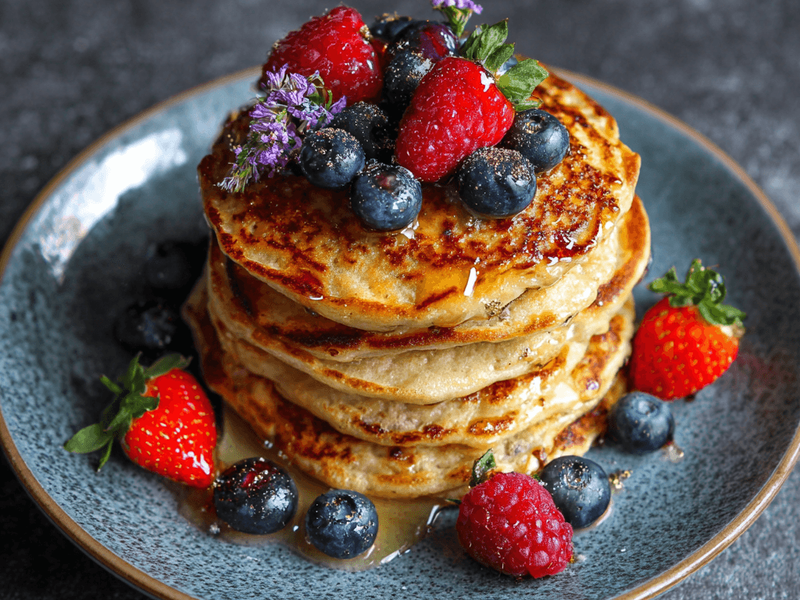 - Ingredients: Oats, eggs, protein powder, almond milk, blueberries.