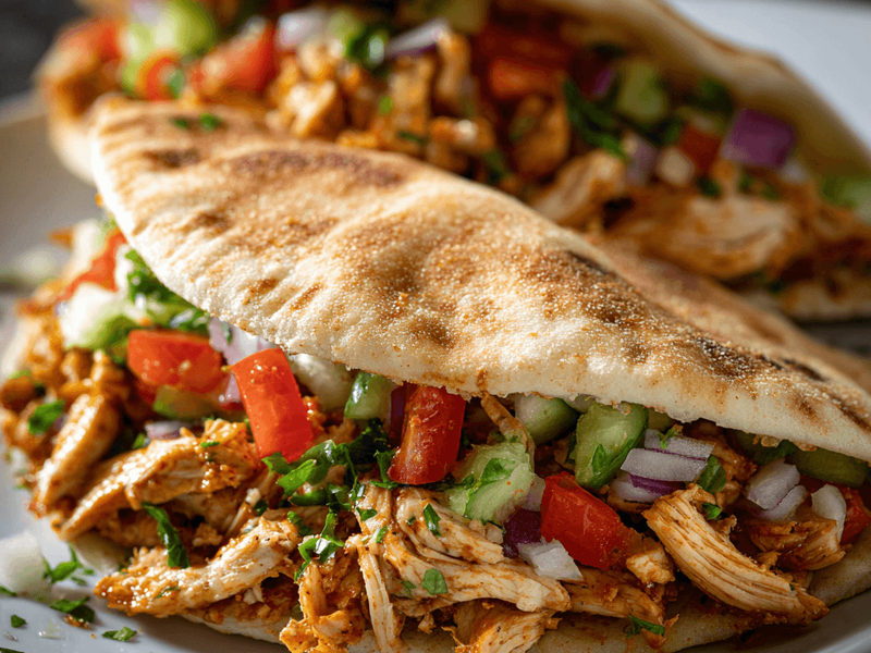 - Ingredients: Whole wheat pita, grilled chicken, hummus, lettuce, tomato.