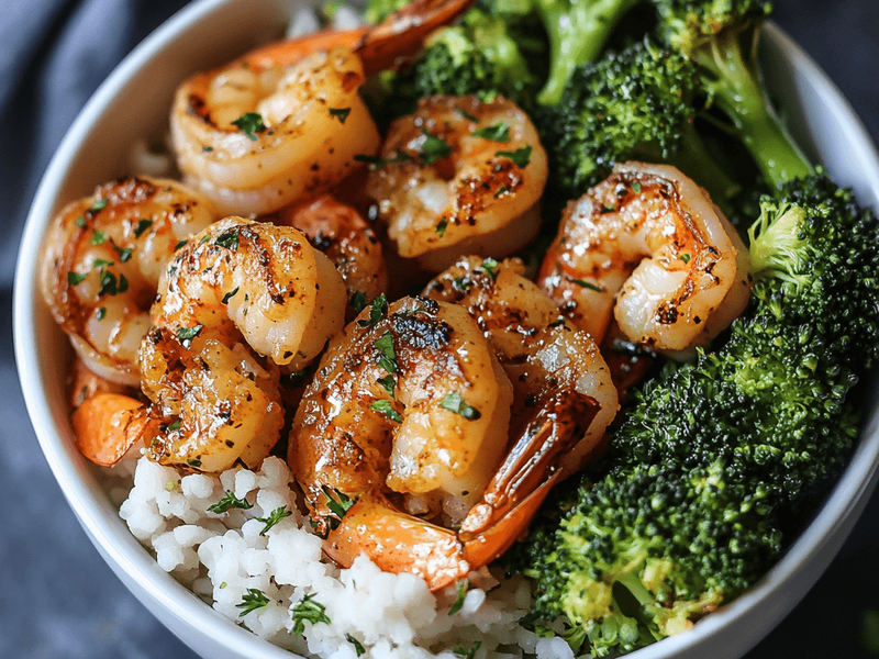 1.Garlic Butter Shrimp & Broccoli Bowls