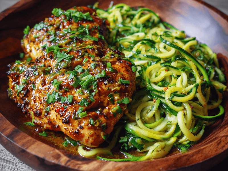 3. Toss in zucchini noodles, cook 2–3 mins.
