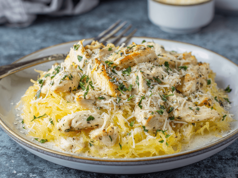 1. Roast spaghetti squash at 400°F for 35–40 mins.