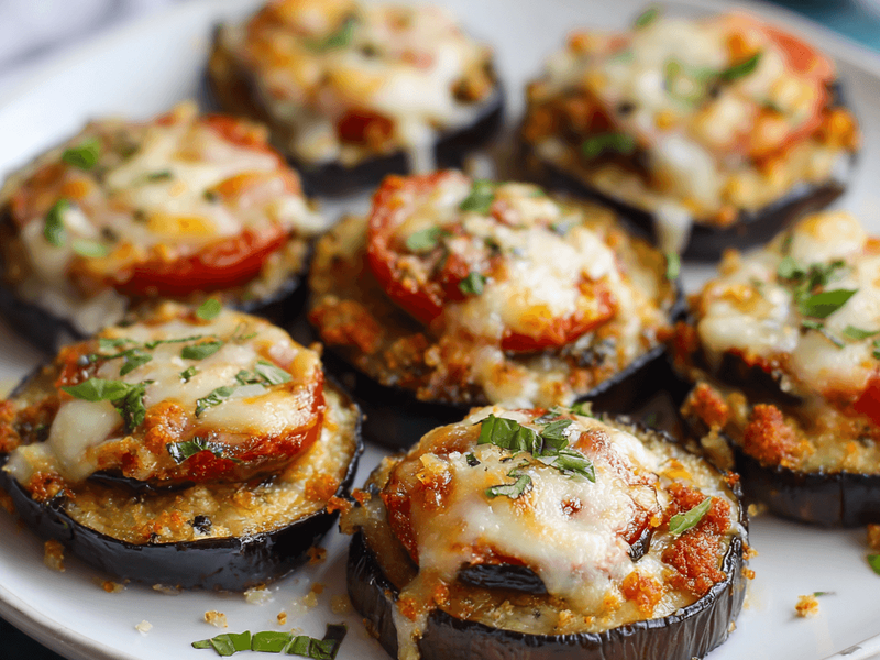 1. Slice eggplant into rounds, bake 10 mins at 375°F.