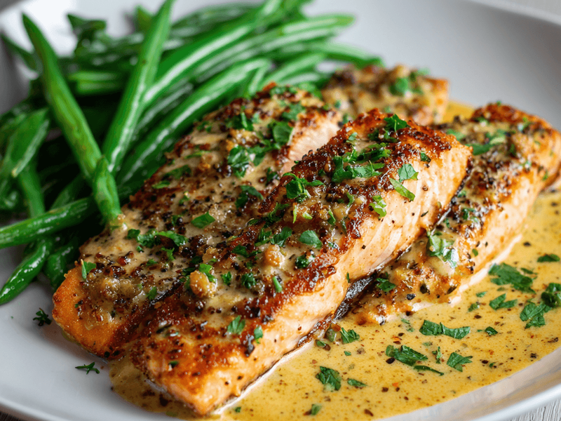 Description: Sweet and tangy salmon with crisp-tender beans.