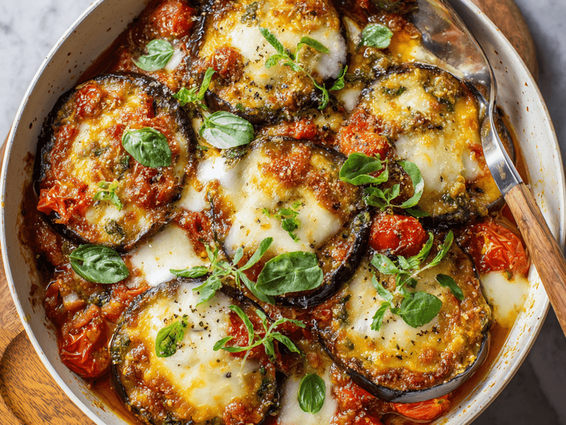 9. Eggplant and Tomato Bake with Mozzarella