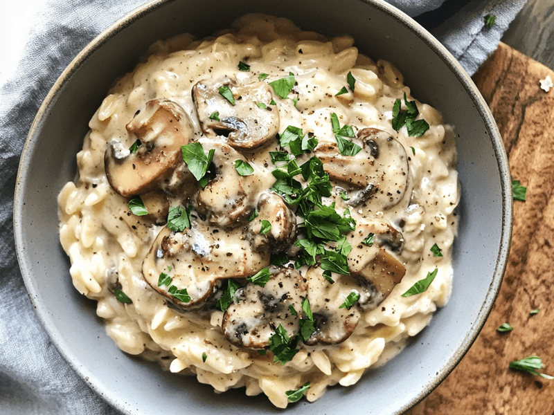 Rich, earthy mushrooms meet buttery orzo in this stovetop comfort bowl.