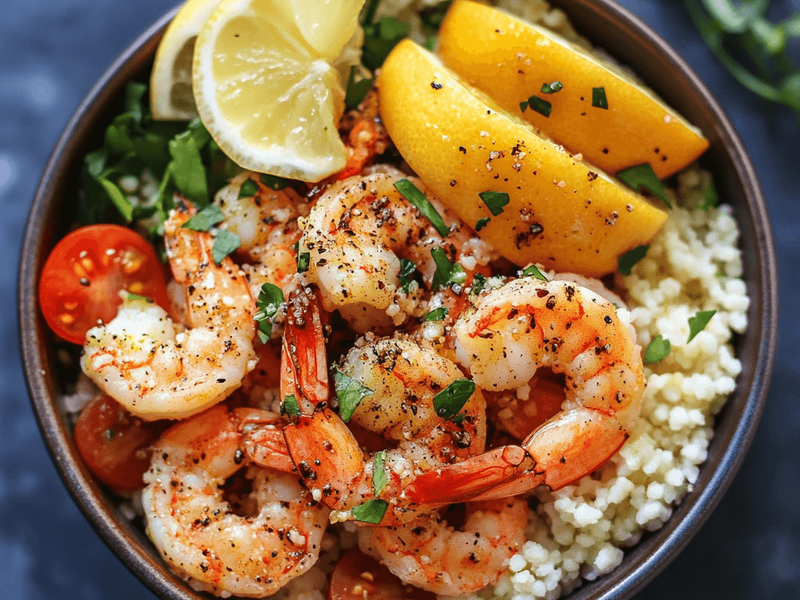 2. Sauté garlic in butter, add shrimp until pink. Serve over couscous with lemon.