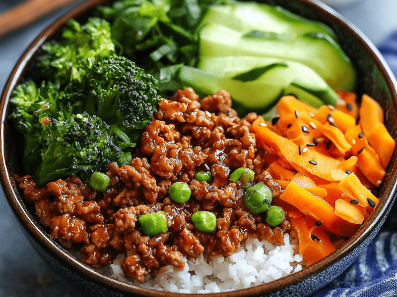 Light and savory, this bowl uses lean turkey and a sweet teriyaki glaze.