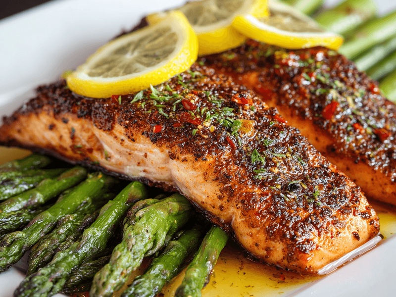 - Ingredients: Salmon fillets, lemon, dill, garlic, asparagus, olive oil.