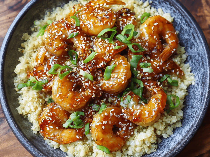 - Ingredients: Shrimp, cauliflower rice, soy sauce, garlic, sesame oil.