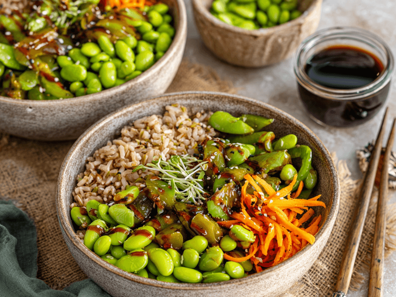 - Ingredients: Brown rice, edamame, roasted carrots, broccoli, soy-ginger sauce.