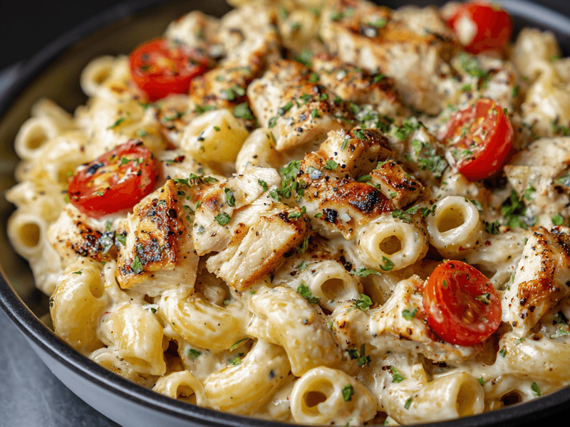 - Ingredients: Protein-enriched pasta, grilled chicken, light alfredo sauce, spinach.
