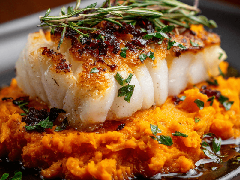 - Ingredients: Cod fillets, lemon, garlic, olive oil, sweet potatoes.