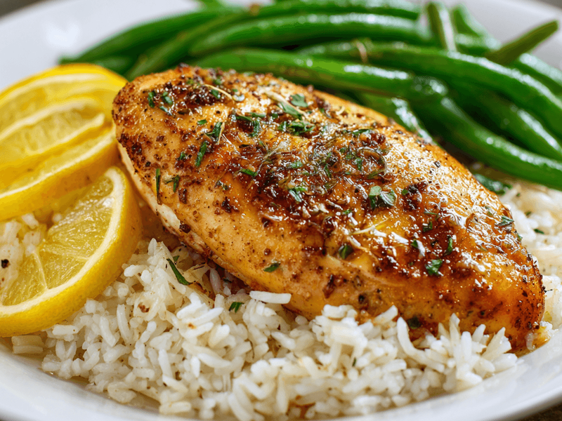 1. Lemon Garlic Chicken with Green Beans & Rice