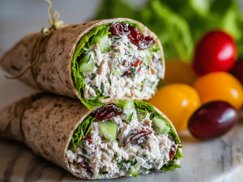 - Ingredients: Canned tuna, Greek yogurt, celery, lemon juice, whole wheat wraps.