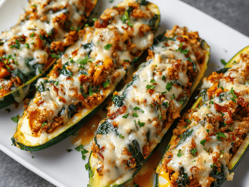 10. Turkey & Spinach Stuffed Zucchini Boats